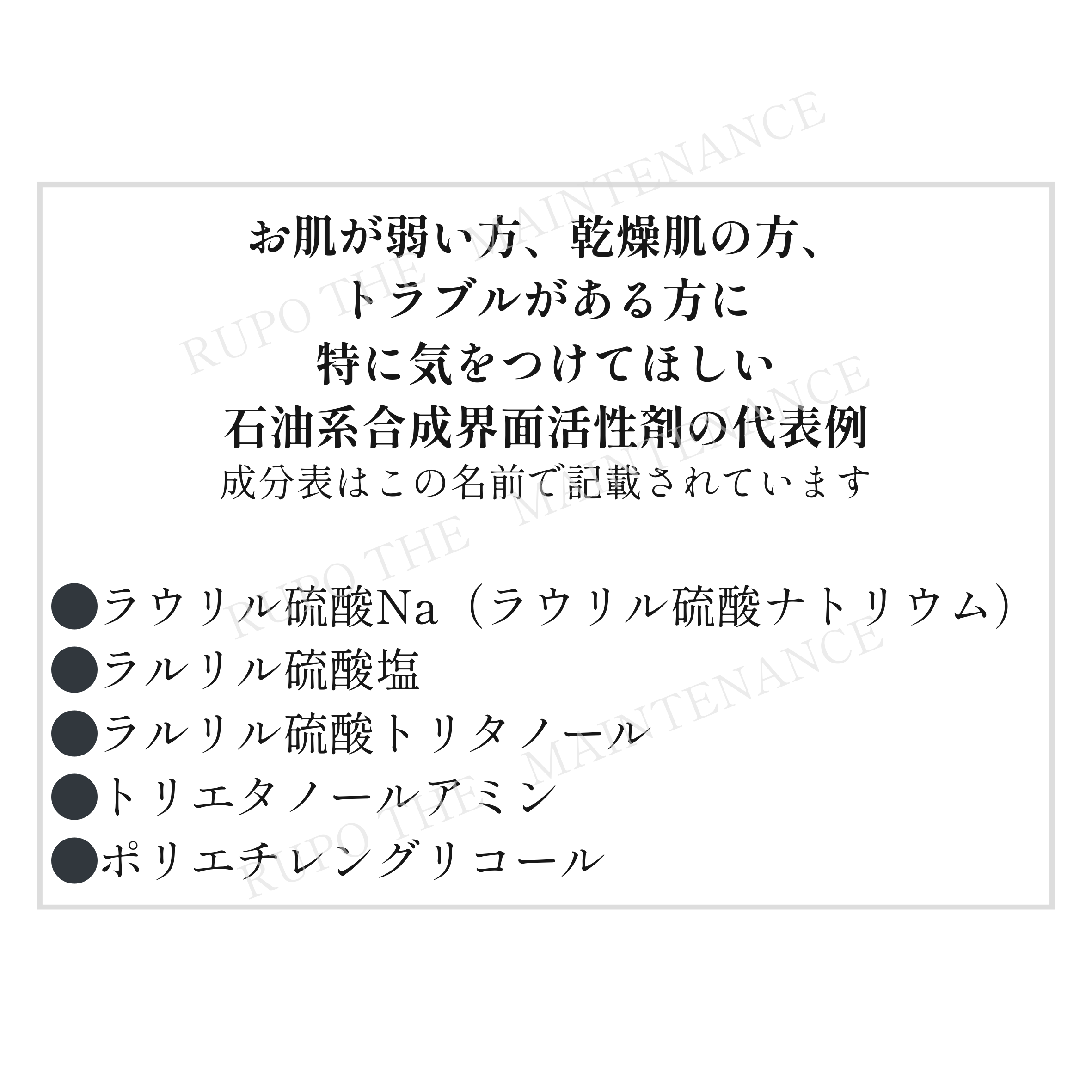 界面活性剤という言葉を聞いたことはございますか?界面活性剤には石油系合成界面活性剤やアミノ系界面活性剤などの天然界面活性剤がございます。石油系合成界面活性剤は洗浄力が高くコスパの良さから洗顔やクレンジングなどのあらゆる日用品に使用されております。デメリットはお肌のタンパク質を「変性」「溶かす」作用があり、科学的に知られた事実です。そのためお肌が摩耗し乾燥肌や赤みなどといった、お肌が敏感になる方がいらっしゃいます。
